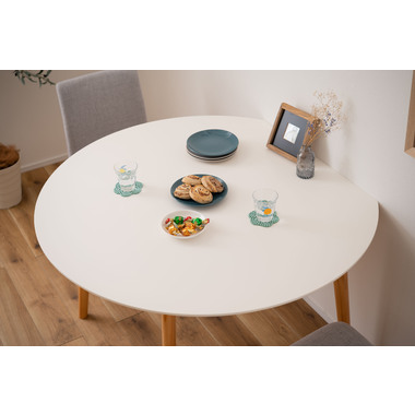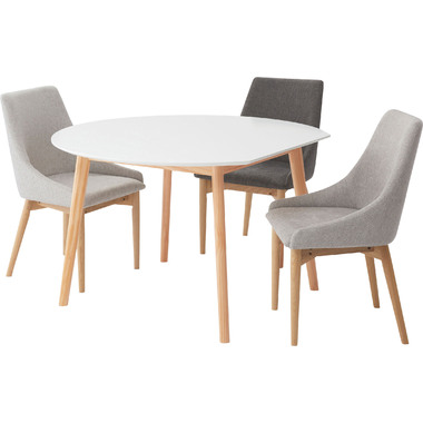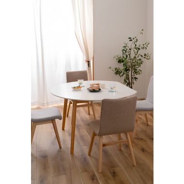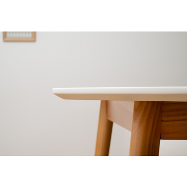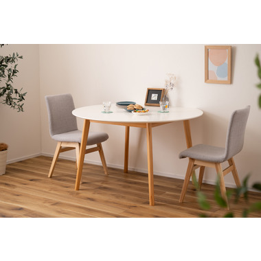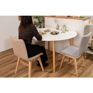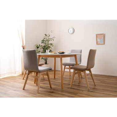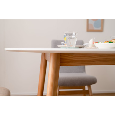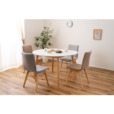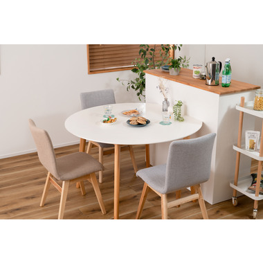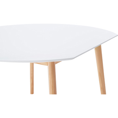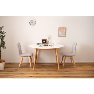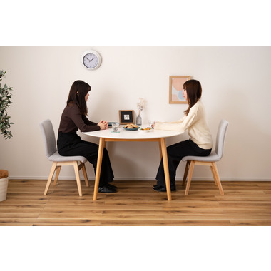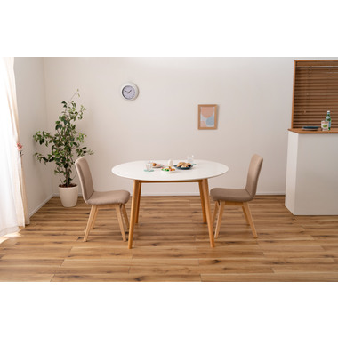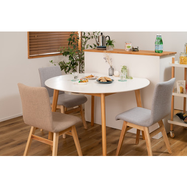 ●キッチンカウンターや壁面に合わせて使用できる変形テーブル。●省スペースでも、ラウンドタイプのテーブルとして使用できます。●4人掛けとして使用にも十分な広さのテーブルです。●天板サイドの小口はデザイン性の高い船底形状。●組立は付属の六角レンチを使い脚を取り付けるだけの簡単組立。●天板表面はNA・WHどちらも凹凸のない仕様。NAは木目調デザイン。WHは単色のきれいな仕上がり。●天板下には幕板が付いているので反り止めにもなり安定した形状。●脚裏にはフェルトが付いているので、床への傷防止にもなり安心です。