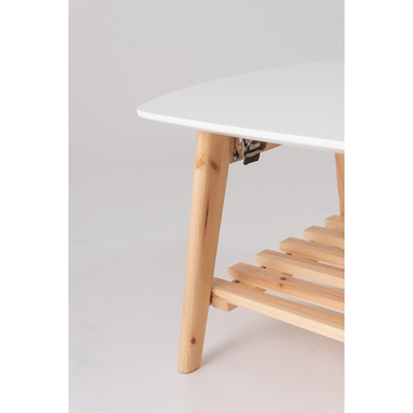 ●天然木の優しい風合いが印象的なフォールディングテーブル。●棚付なのでリモコンや雑誌などすぐ手に取りたい物を収納できます。●棚を取り外して足を広々使うことも可能です。●使わないときは折りたたんでおけるのも嬉しいポイント。●フレームには天然木の風合いを活かしたパイン材を使用。ホワイトの天板との相性が良くフレンチカントリーテイストにもピッタリのテーブル。