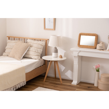 ●ホワイトの天板と天然木の脚の組み合わせが温かみのある印象を与えてくれるサイドテーブル。●シンプルで無駄のないデザインがお部屋の雰囲気をお洒落に演出してくれます。●ベッドやソファのサイドテーブルとしてピッタリのサイズ。●フレームには天然木の風合いを活かしたパイン材を使用。ホワイトの天板との相性が良くフレンチカントリーテイストにもピッタリのテーブル。