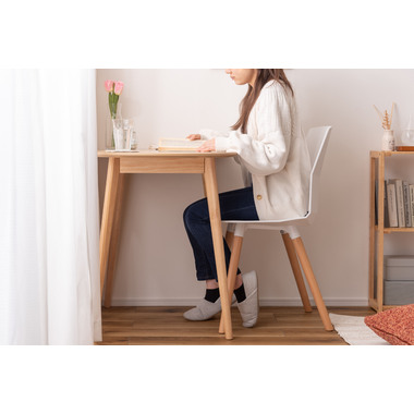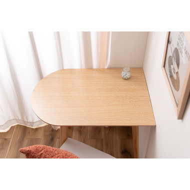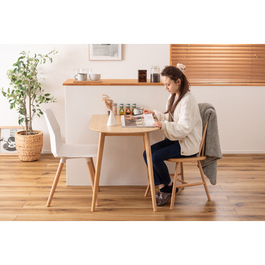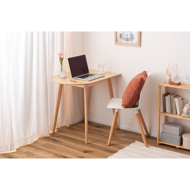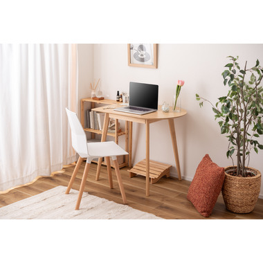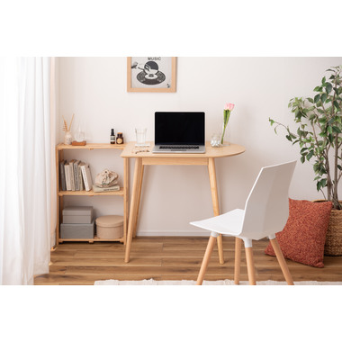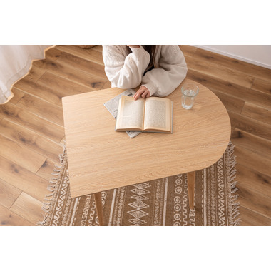 壁面やお部屋の角にレイアウトする事が出来る為、限られたスペースを有効活用しながらお部屋を広く 使えます。天然木のぬくもりを感じる質感と一辺に曲線を取り入れたやさしいフォルムが、可愛らしさを演出してくれます。