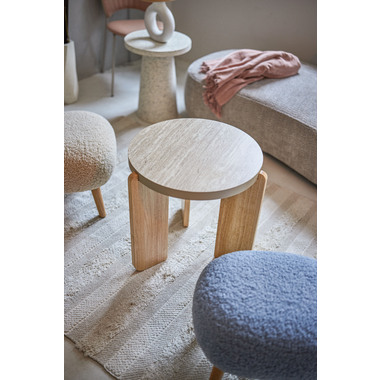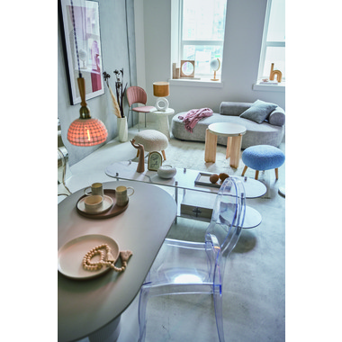●優しい色味と角の丸いフォルムが特徴的な、シンプルで落ち着いたテーブル。