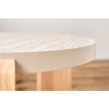 ●大理石調天板と天然木を組み合わせたラウンドテーブル。