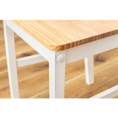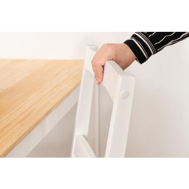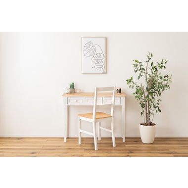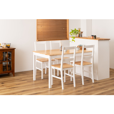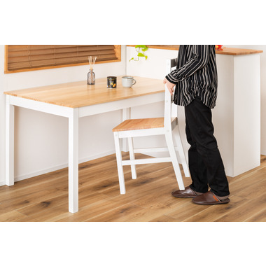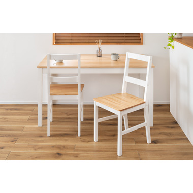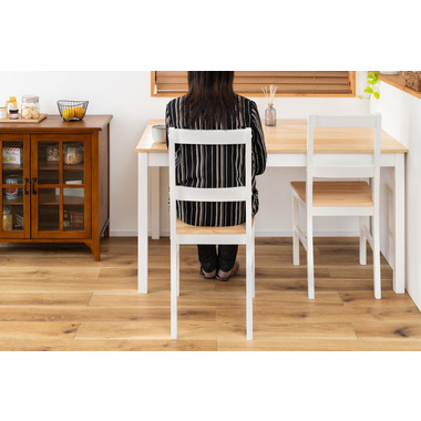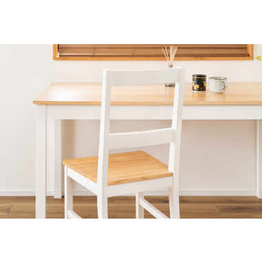 あたたかみのある木目と真っ白な脚が爽やかで美しいナチュラルなダイニングチェア。天然木を活かした落ち着きのある、上品な印象に仕上げました。シンプルなデザインのため空間に合わせやすく、優しい雰囲気を演出します。