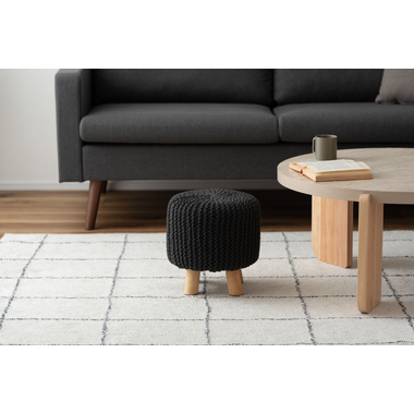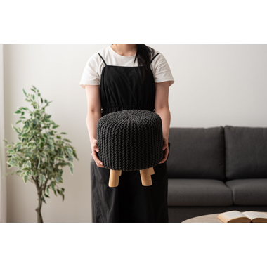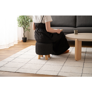 ●ざっくりとしたニット風デザインと、天然木の組み合わせが魅力的なスツール。