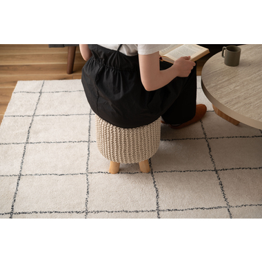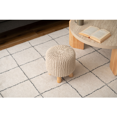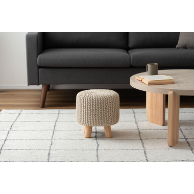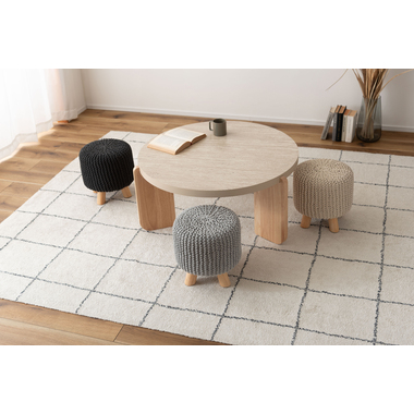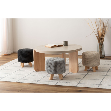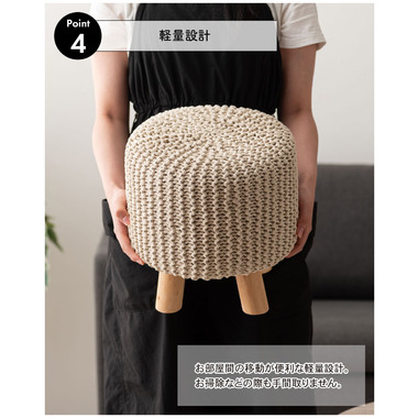 ●ざっくりとしたニット風デザインと、天然木の組み合わせが魅力的なスツール。