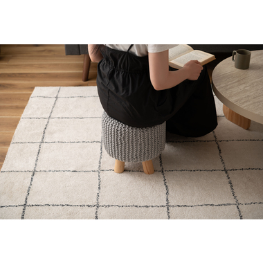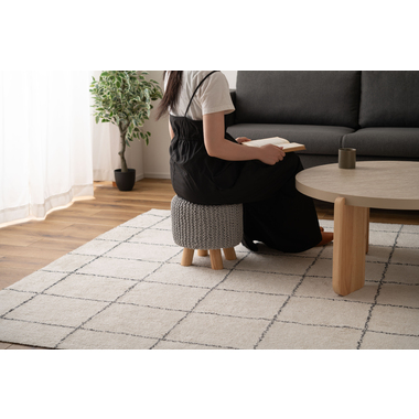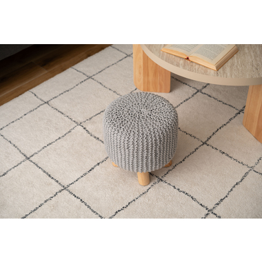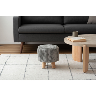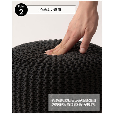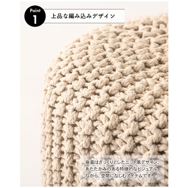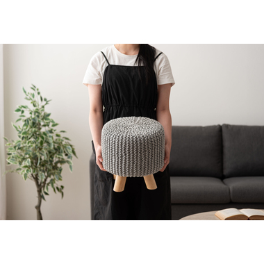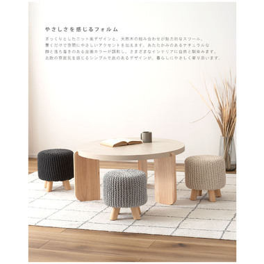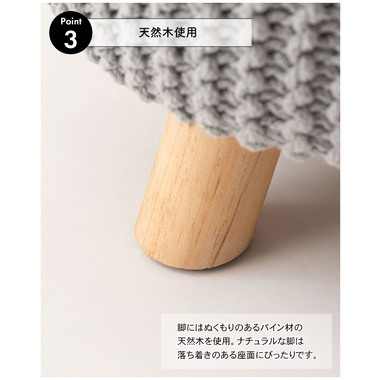 ●ざっくりとしたニット風デザインと、天然木の組み合わせが魅力的なスツール。
