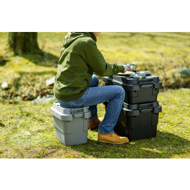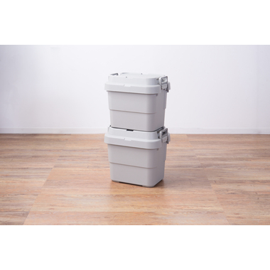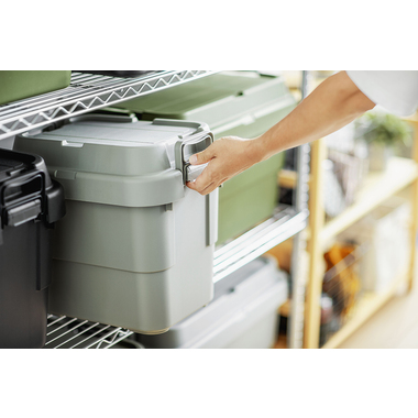 トレー型でフラット形状のフタがテーブルとしても使え、積み重ねたときのずれも防止できる仕様となっております。