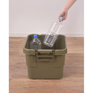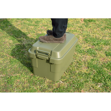 フタの裏は格子状のリブを立てた特殊構造。耐荷重は100kg。丈夫なので、工具入れとしても使用できます。・座ることができるので椅子としても使用できます。ロック機能付きの取手は握りやすく、持ち運びもラクラク♪シンプルなデザインなので、玄関先やベランダにも置きやすい!キズや汚れが目立たない、マットな仕上り。