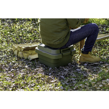 トレー型でフラット形状のフタがテーブルとしても使え、積み重ねたときのズレも防止できる仕様となっております。