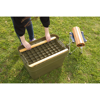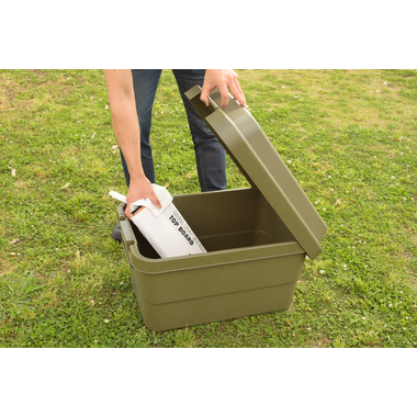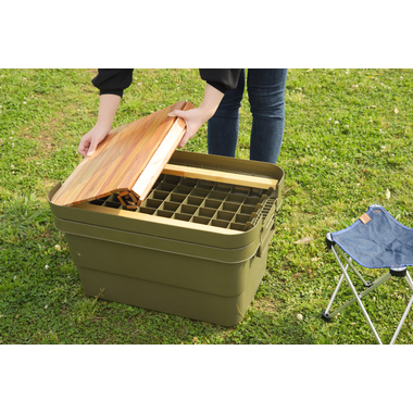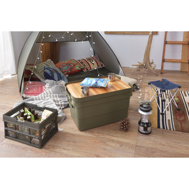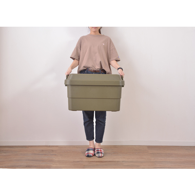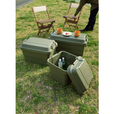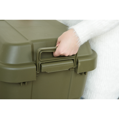 フタの裏は格子状のリブを立てた特殊構造。耐荷重は100kg。丈夫なので、工具入れとしても使用できます。・座ることができるので椅子としても使用できます。ロック機能付きの取手は握りやすく、持ち運びもラクラク♪シンプルなデザインなので、玄関先やベランダにも置きやすい!キズや汚れが目立たない、マットな仕上り。