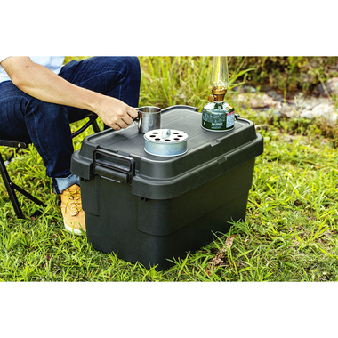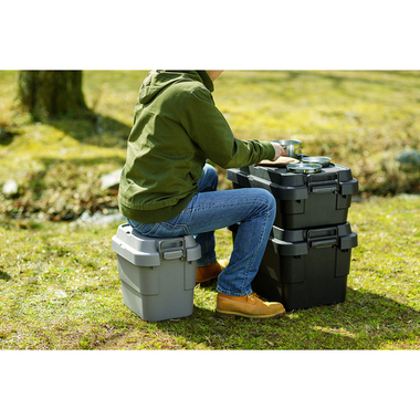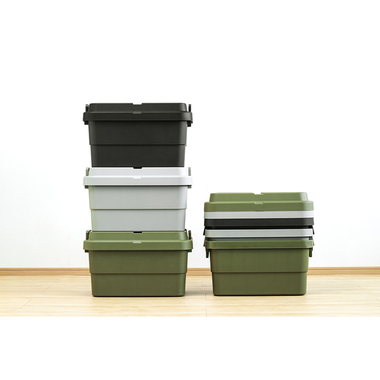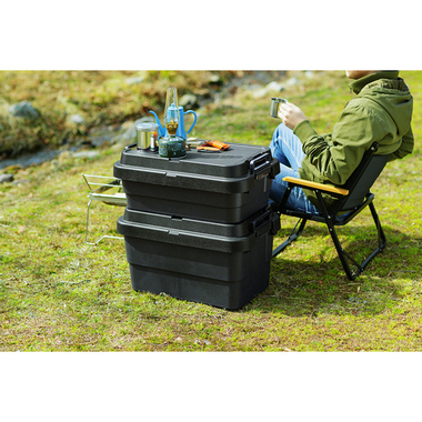 トレー型でフラット形状のフタがテーブルとしても使え、積み重ねたときのずれも防止できる仕様となっております。