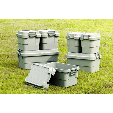 トレー型でフラット形状のフタがテーブルとしても使え、積み重ねたときのずれも防止できる仕様となっております。