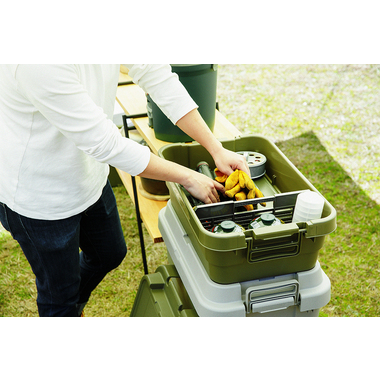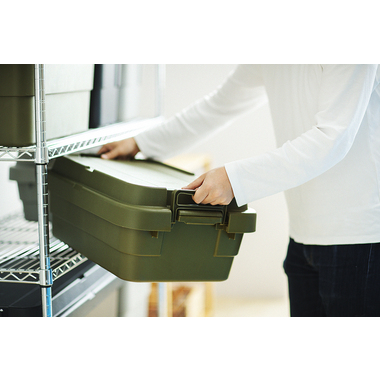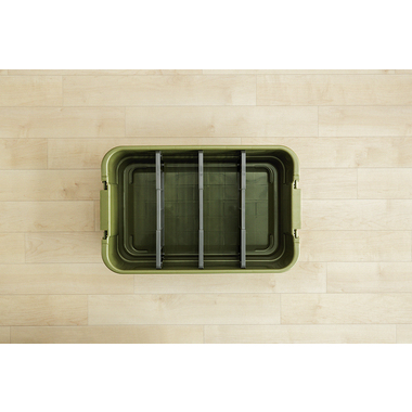 収納しやすく取り出しやすい浅型タイプで更に容器内で荷物を整理できる仕切板(別販売)を使って