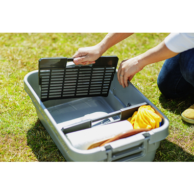 収納しやすく取り出しやすい浅型タイプで更に容器内で荷物を整理できる仕切板(別販売)を使って