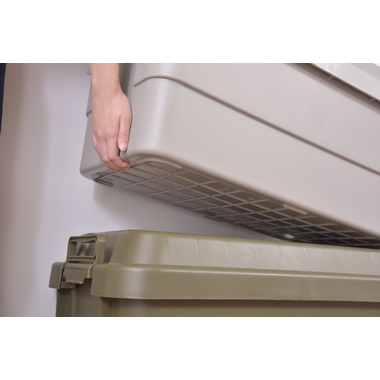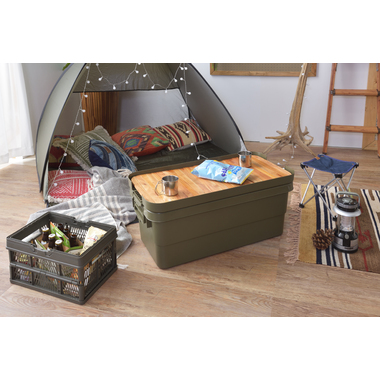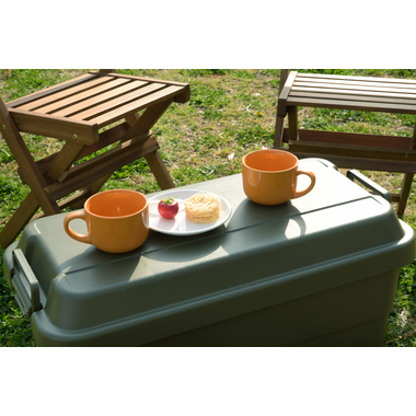 フタの裏は格子状のリブを立てた特殊構造。耐荷重は100kg。丈夫なので、工具入れとしても使用できます。・座ることができるので椅子としても使用できます。ロック機能付きの取手は握りやすく、持ち運びもラクラク♪シンプルなデザインなので、玄関先やベランダにも置きやすい!キズや汚れが目立たない、マットな仕上り。