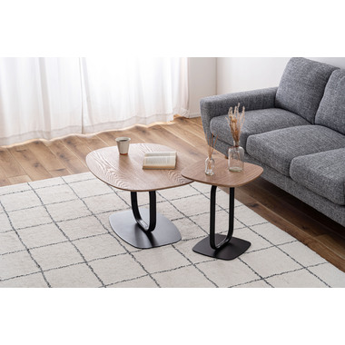 脚の抜け感が美しいテーブル 落ち着いた雰囲気とスタイリッシュさを兼ね備えた、サイドテーブルとリビングテーブル。サイドテーブルと組み合わせて使えば、ネストテーブルとしてお使いいただけます。デザイン性の高い脚が、モダンでセンスの良い空間を演出します。