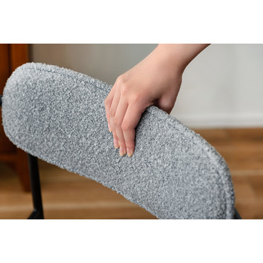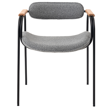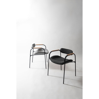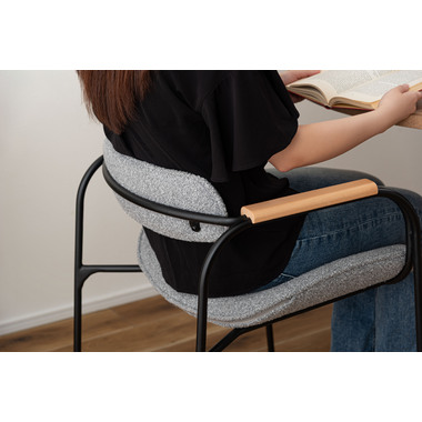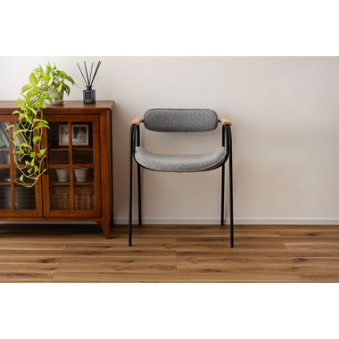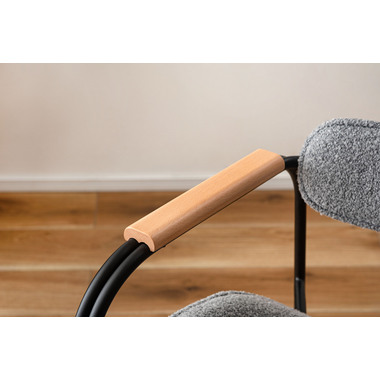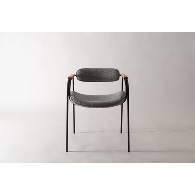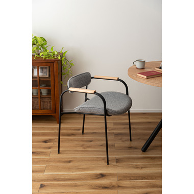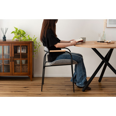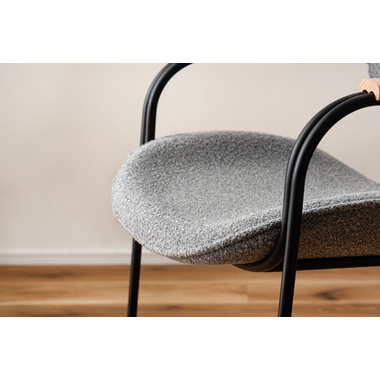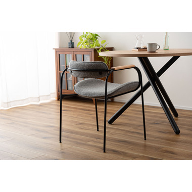 ●すっきりとしたブラックスチールと、丸みを帯びたフォルムが個性的なアームチェア。