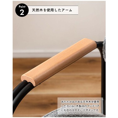 ●あたたかみのある天然木を使用したアーム。木製品のインテリアにも合わせやすいデザイン。