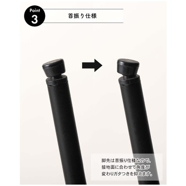 ●脚先は首振り仕様なので、接地面に合わせて角度が変わりガタつきを抑制。
