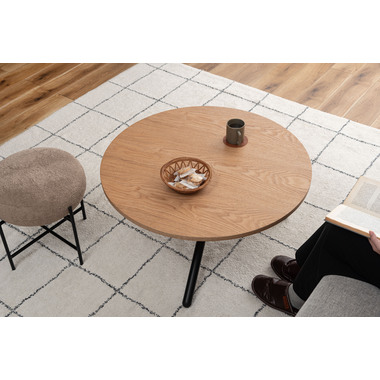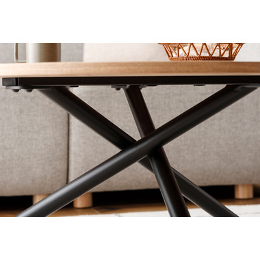 ●クロスした3本のブラックスチール脚がスタイリッシュなラウンドテーブル。