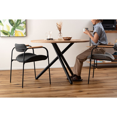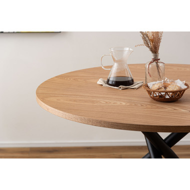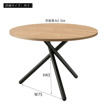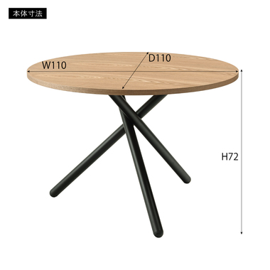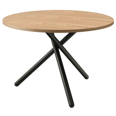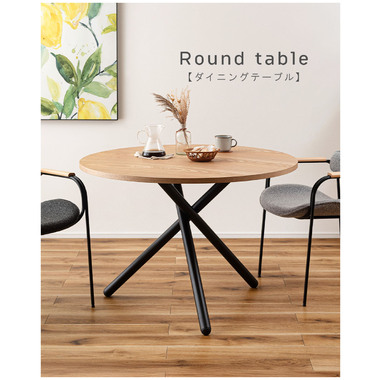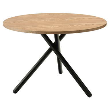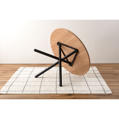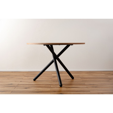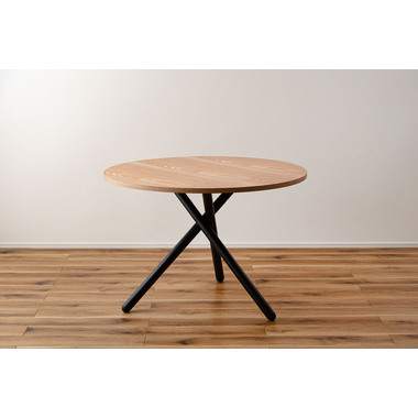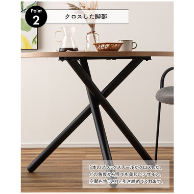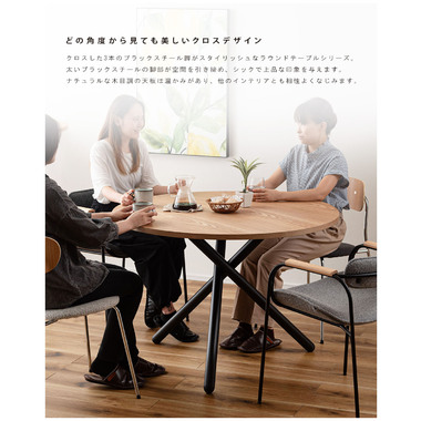 ●クロスした3本のブラックスチール脚がスタイリッシュなラウンドテーブル。