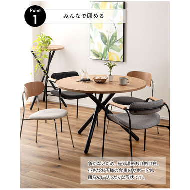 ●角がないため座る場所も自由自在。小さなお子様の食事のサポートや、団らんにぴったりな形状。