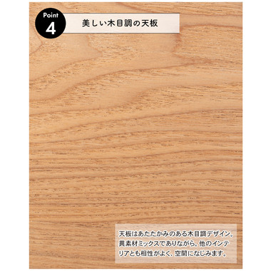 ●ナチュラルな木目調の天板は温かみがあり、他のインテリアとも好相性。