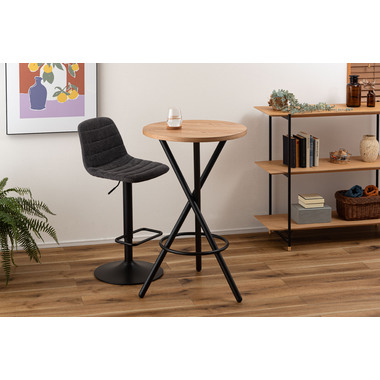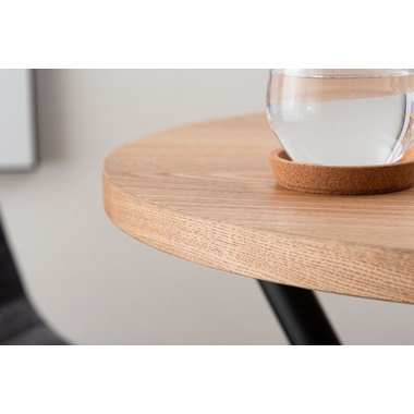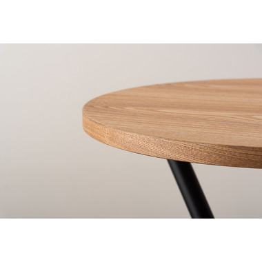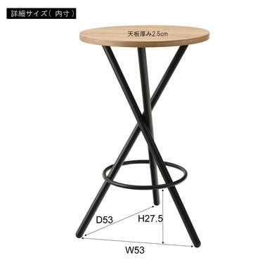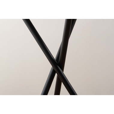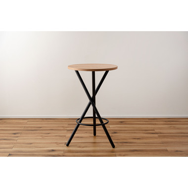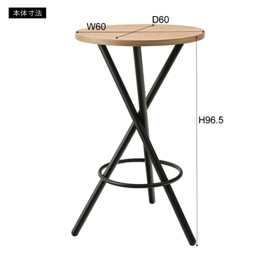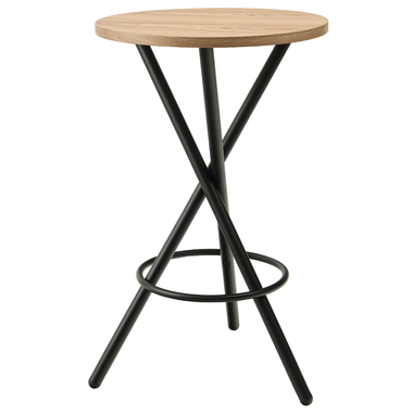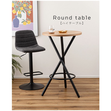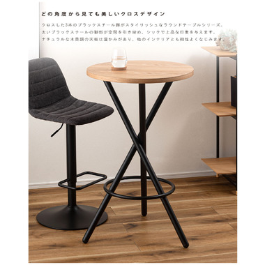●クロスした3本のブラックスチール脚がスタイリッシュなラウンドテーブル。