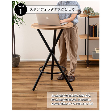●床から天板まで高さ約96.5cmとハイタイプのテーブルなので、立ったままの作業などにもぴったり。