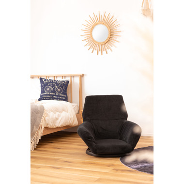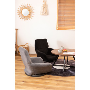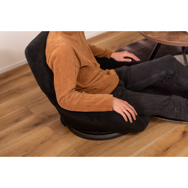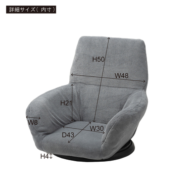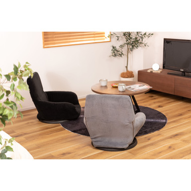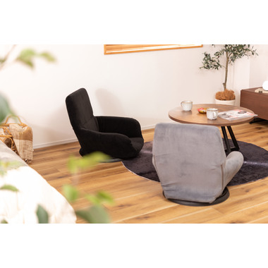 ●360度回転するので座ったまま向きを変えられ、狭いスペースでも動きやすさをサポートするフロアチェア。●柔らかい触感の生地が体を優しく包み込んでくれます。●バケットタイプで包み込まれるような座り心地を体感でき、長時間座っても疲れにくい設計のフロアチェア。●肘掛けが付いているので立ち座りがしやすく、安定感のある座り心地。●ロースタイルでのお仕事用から、テレビや動画を見る時のリラックスタイム用など幅広く使えます。●厚みがありふかふかとした背もたれも、ゆったりと座れるポイント。●背もたれを前に倒せばコンパクトサイズに。持ち運びが簡単で省スペース収納も出来るので便利です。●回転台が付いている分、わずかに座面が高くなっているので足を伸ばしても座りやすい仕様。