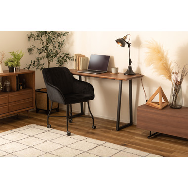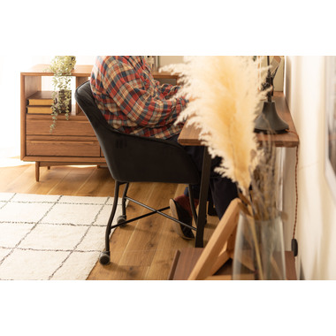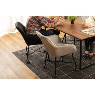 ●ベロアの上質な質感と脚のなめらかなカーブが美しいチェア。●キャスター付きで着座、離席時の動きがスムーズ。使い心地抜群。●触感の良い生地で、カーブの付いた背とアームが身体になじみ寛げます。●デスクやダイニングはもちろん、ミーティングスペースや、フリースペース、休憩スペースでもおすすめ。