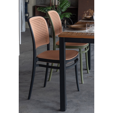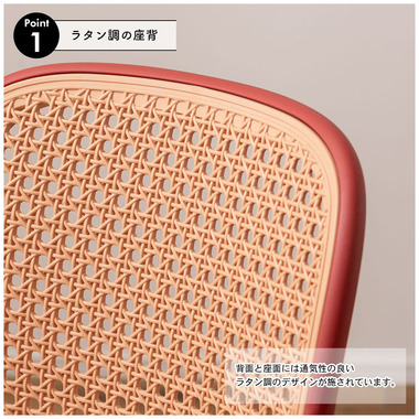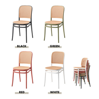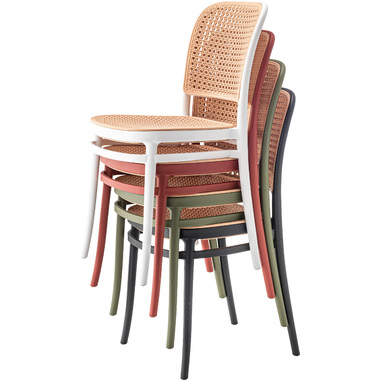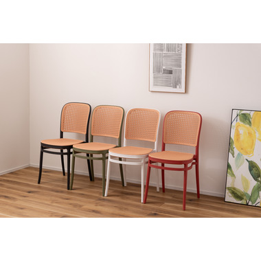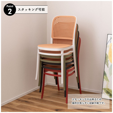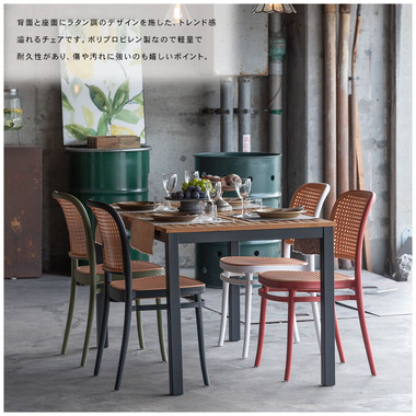 背面と座面にラタン調のデザインを施した、トレンド感溢れるグレイスチェア。ポリプロピレン製なので軽量で耐久性があり、傷や汚れに強いのも嬉しいポイント。どのカラーも落ち着いた合わせやすい色味をチョイスしており、お部屋ではもちろん、ガーデンシーンにもよく馴染むデザインです。スタッキング可能なので場所を取らずに収納することが出来ます。