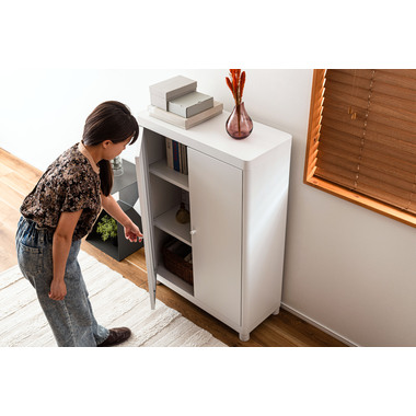 ●収納するものによって高さを変えることができる可動棚仕様なので、スペースを活かして使用可能。