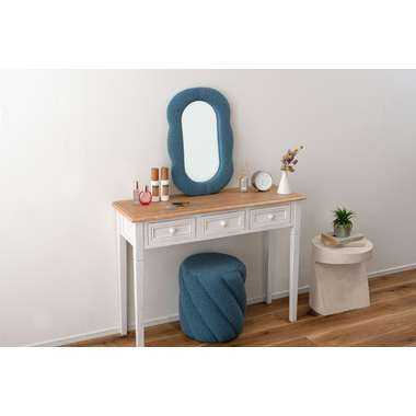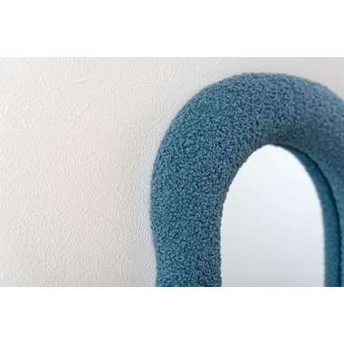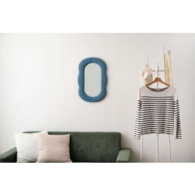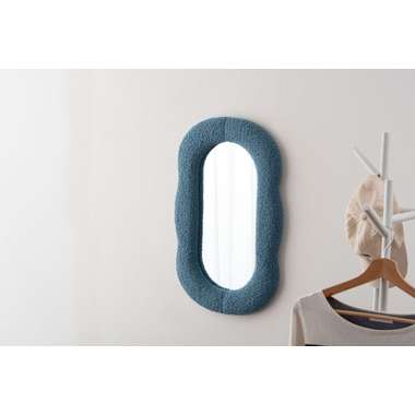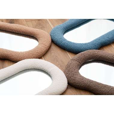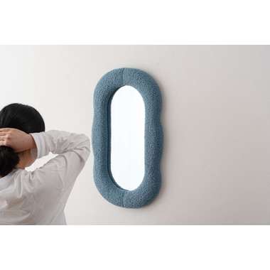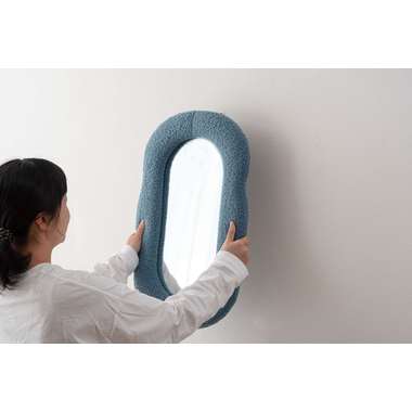 やわらかな素材のフレームが印象的な、柔らかな表情のミラー。滑らかなフォルムと鏡の組み合わせが、空間に穏やかな印象を与えます。上品なニュアンスカラーのファブリックが、ほどよいアクセントになり、上品であたたかみのあるインテリアです。