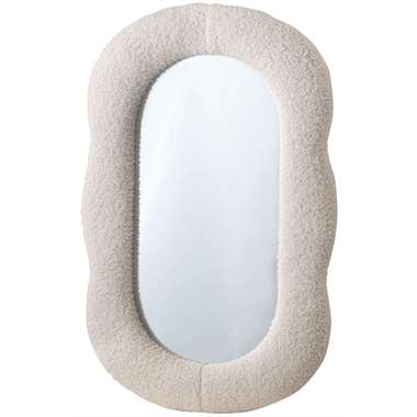 やわらかな素材のフレームが印象的な、柔らかな表情のミラー。滑らかなフォルムと鏡の組み合わせが、空間に穏やかな印象を与えます。上品なニュアンスカラーのファブリックが、ほどよいアクセントになり、上品であたたかみのあるインテリアです。