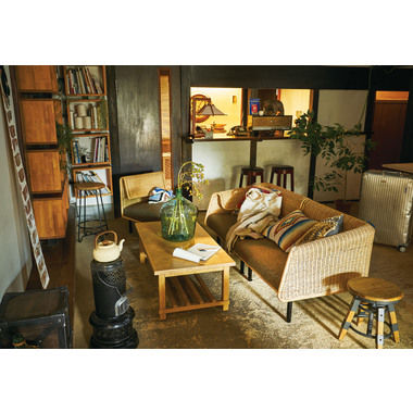 素朴な風合いの木部と無骨なスチール部分のバランス、高いデザイン性で