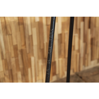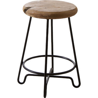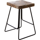 黒いフレームにデザイン性を持たせ、味わい深いチークの無垢材と組み合わせたスツール&サイドテーブル。