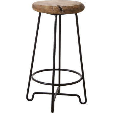 黒いフレームにデザイン性を持たせ、味わい深いチークの無垢材と組み合わせたスツール&サイドテーブル。