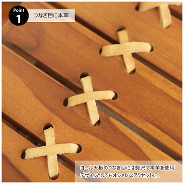 ●ロール天板のつなぎ目には贅沢に本革を使用。デザインとしてもオシャレなアクセントに。