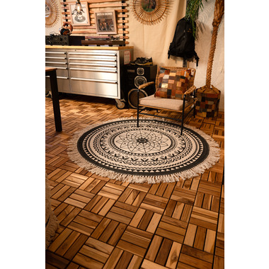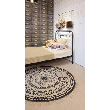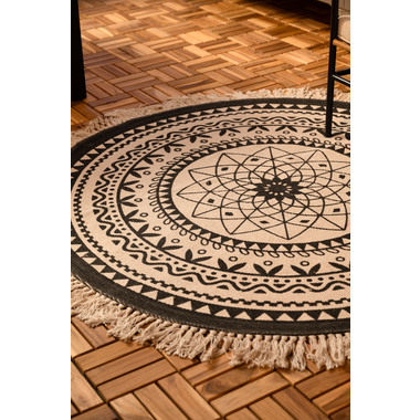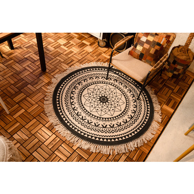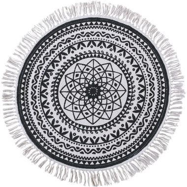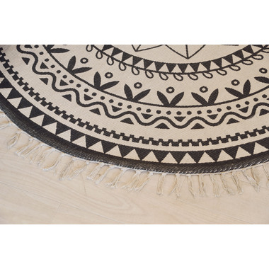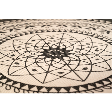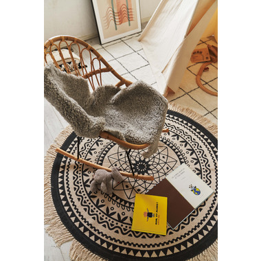 イラストや模様を、モノトーンで表現したラグ。