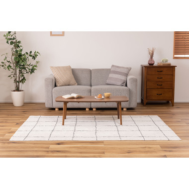 ●どんなインテリアにも合わせやすいシンプルなラグ。●飽きのこないデザインと大きめのサイズでリビングとの相性もばっちりです。●保温力と通気性を兼ね備えたコットン素材を使用しており、オールシーズンで使うことができます。●冬シーズンはコタツの下に敷いてコタツ用ラグとしても使えます。