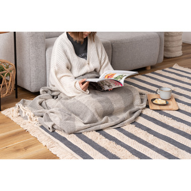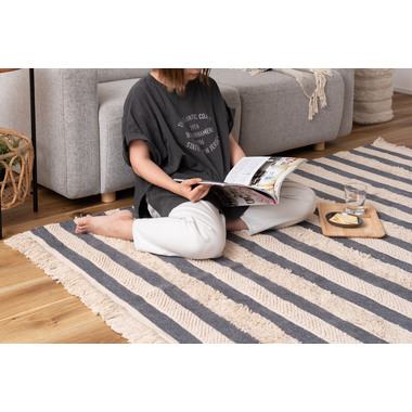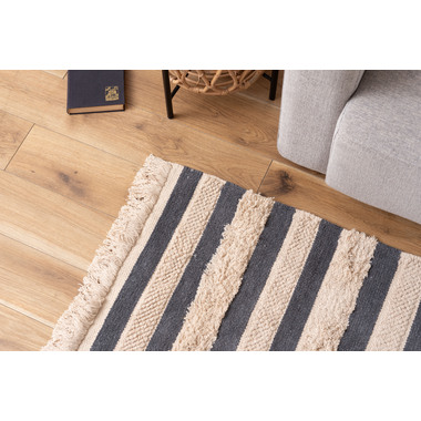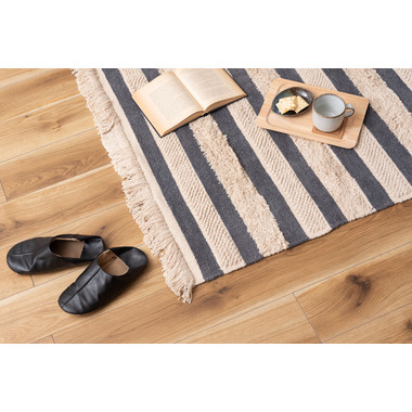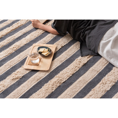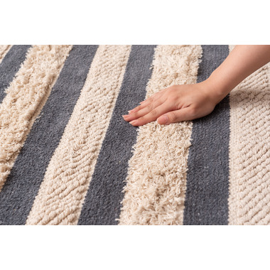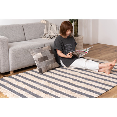 ●織り方を変えて表現された太目のストライプは優しいお部屋のインテリアを演出。