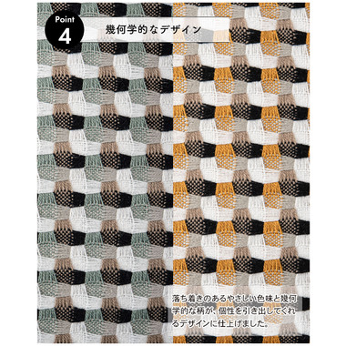 ●落ち着きのある色味と幾何学的な柄が個性を引き出してくれるデザイン。