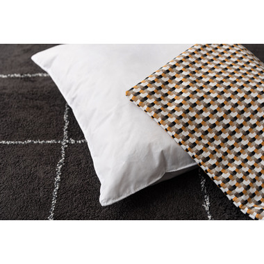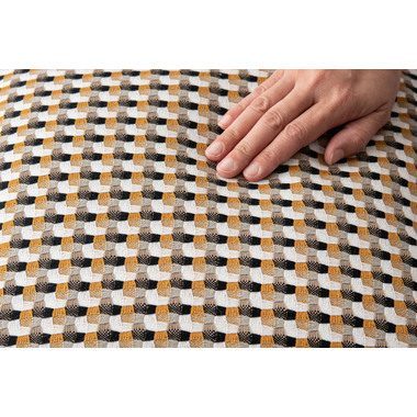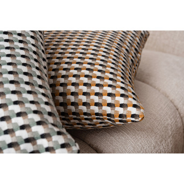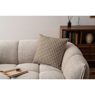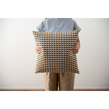 ●優しい色味で幾何学柄のデザインが魅力的なクッション。