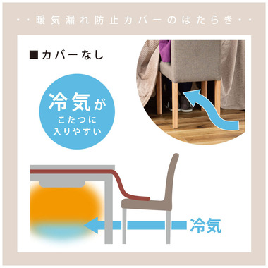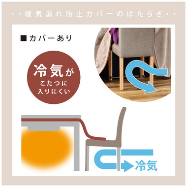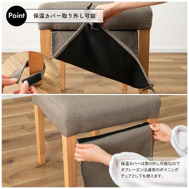 ●こたつの暖気を逃がしにくい「暖気漏れ防止カバー付き」のダイニングチェア。