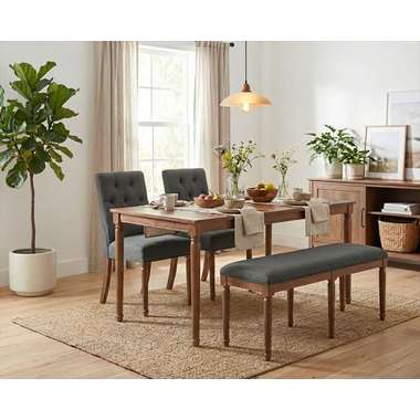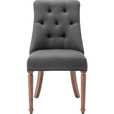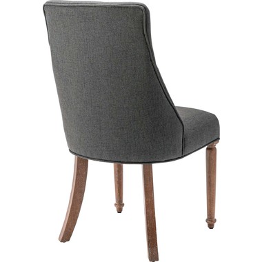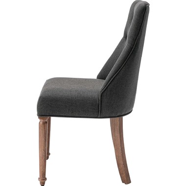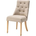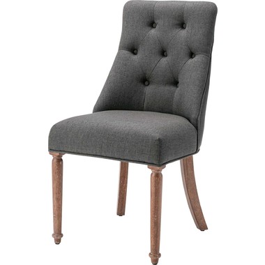 ボタン留めのディテールや、緩やかなカーブを描く脚部など、伝統的な意匠を散りばめながらもグレーとベージュの穏やかなトーンの生地で、落ち着いたニュアンスカラーで仕上げました。リビングにもダイニングにも自然に溶け込み、上品で柔らかな空気感を演出します。