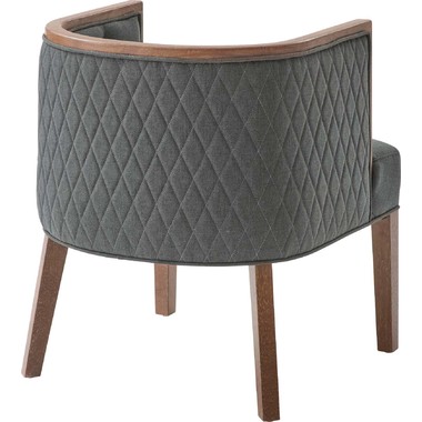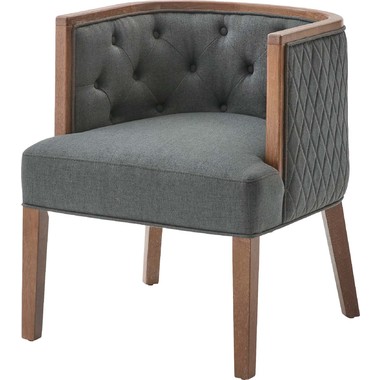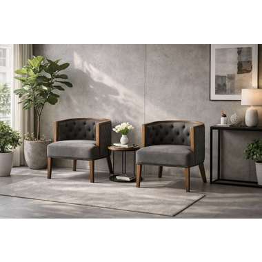 ボタン留めのディテールや、緩やかなカーブを描く脚部など、伝統的な意匠を散りばめながらもグレーとベージュの穏やかなトーンの生地で、落ち着いたニュアンスカラーで仕上げました。リビングにもダイニングにも自然に溶け込み、上品で柔らかな空気感を演出します。