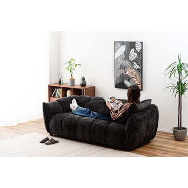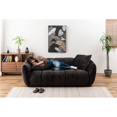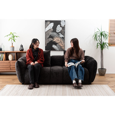 ボリューム感のあるデザインが特徴のローバックソファ 優しい曲線を活かした、丸みのある上品なソファ。ローバックのため、視界を遮らず空間を広く見せてくれます。ボリューム感のあるブロックデザインは、モダンでシックな雰囲気を演出します