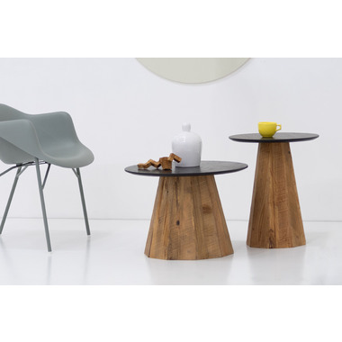●オークの美しい木目を残して塗装された黒い天板と、ひとつひとつ表情の違うパイン古材の脚が上品さを出しつつ、ぬくもりを感じさせるデザインのテーブル。●モダンな空間にアクセントとして活用したり、観葉植物などと合わせたボタニカルテイストにピッタリの商品。●テーブルとして、観葉植物を飾る花台としてなど幅広い用途で使用出来ます。
