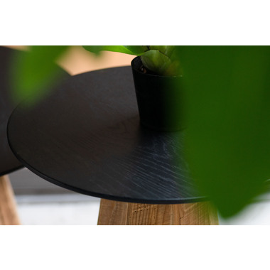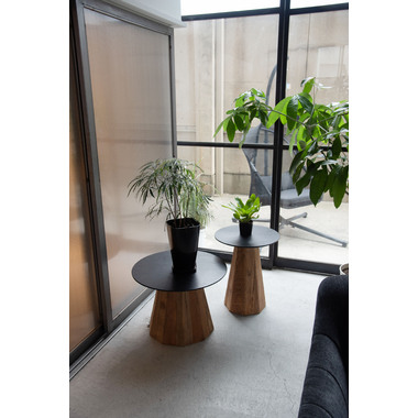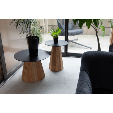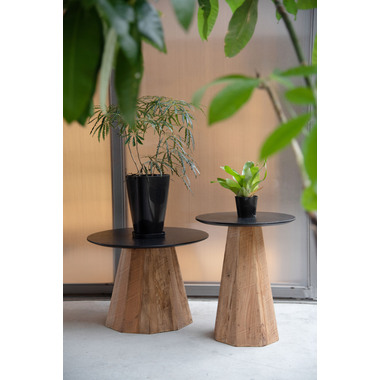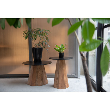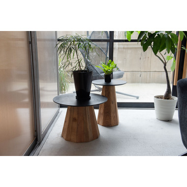 ●オークの美しい木目を残して塗装された黒い天板と、ひとつひとつ表情の違うパイン古材の脚が上品さを出しつつ、ぬくもりを感じさせるデザインのテーブル。●モダンな空間にアクセントとして活用したり、観葉植物などと合わせたボタニカルテイストにピッタリの商品。●テーブルとして、観葉植物を飾る花台としてなど幅広い用途で使用出来ます。